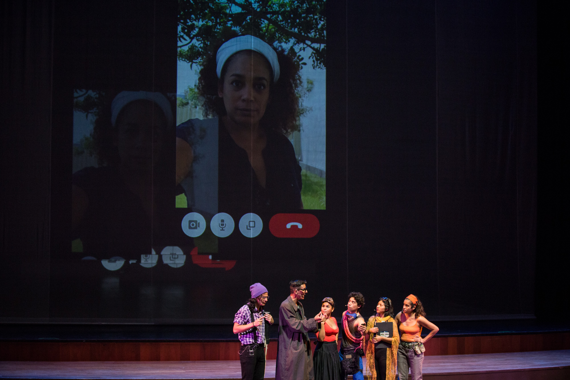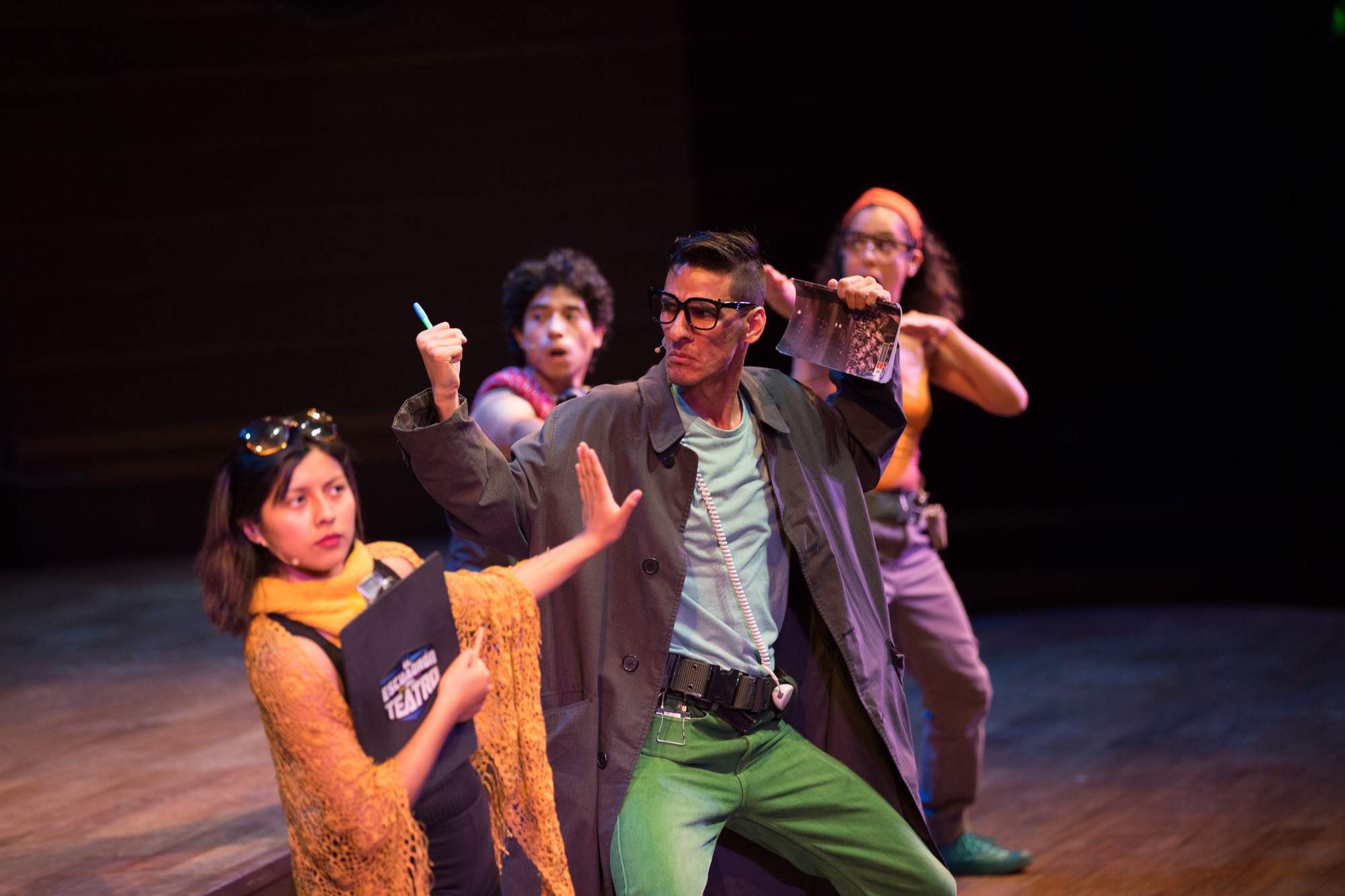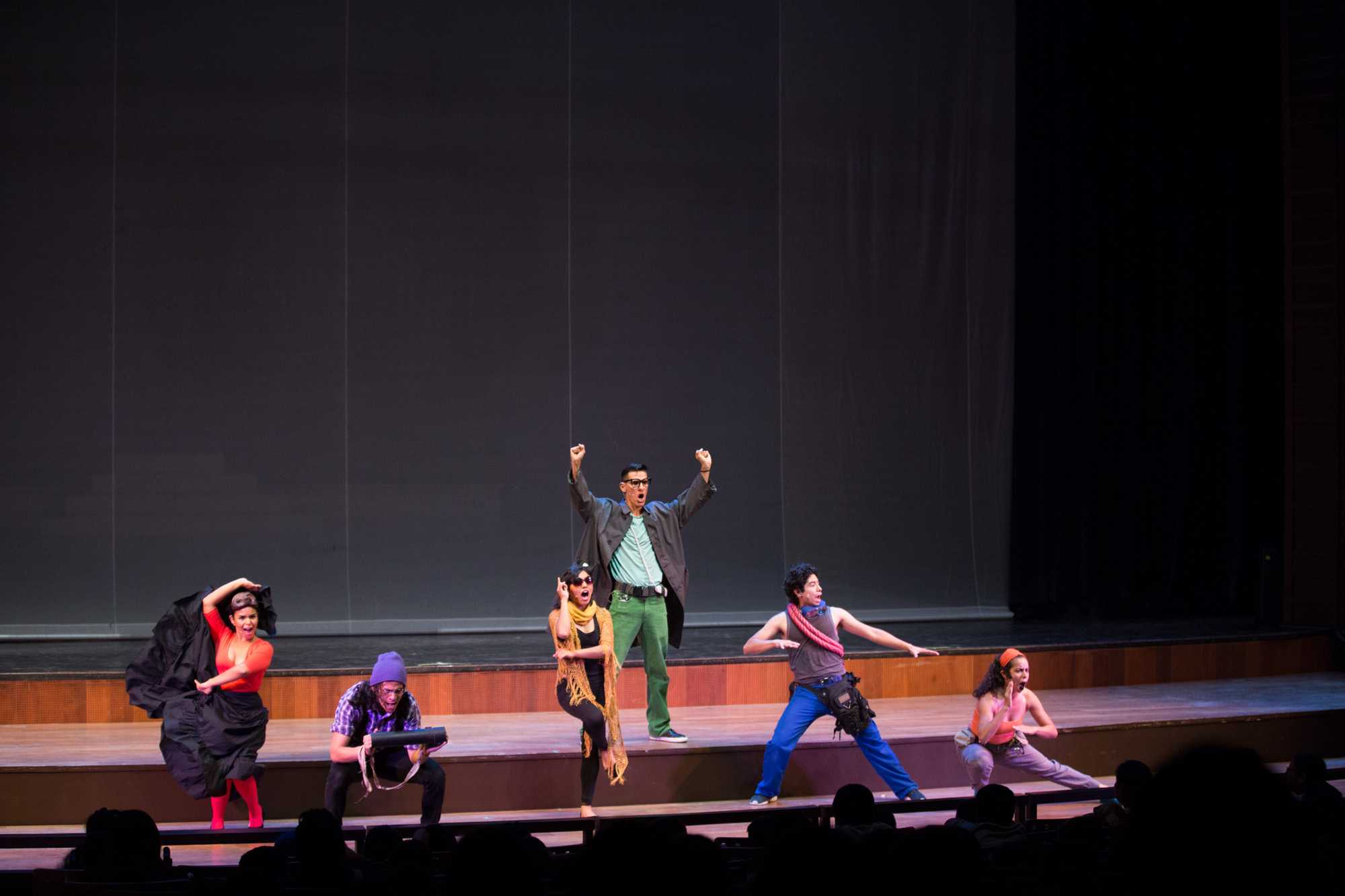 La función termina con la presentación del equipo que cuenta con características particulares, acordes al tipo de elemento que representan: Verony, la directora, con su tableta y su liderazgo; Johan, el productor, caracterizado por ser ordenado y cuidadoso; Checho, el escenógrafo, quien conoce los detalles dimensionales; Lenybeth, la técnica, entusiasta y meticulosa; Lola, la actriz, muy talentosa porque canta, baila y actúa; por último, Luis Miguel, el tramoya, una persona con gran capacidad de movimiento físico, con un ánimo tranquilo para resolver situaciones detrás del escenario y representado como una persona con discapacidad auditiva. Nos dice Vanessa Vizcarra, que el tramoya tiene esta discapacidad porque le parecía coherente las características antes mencionadas de este personaje con el hecho de que se desarrolla más el oído que la palabra, además es una persona que es capaz de entender a los demás; por lo tanto, tiene una perspectiva más serena de las cosas.